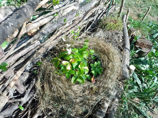 die Benjeshecke: Eine Abgrenzung v.a. für Hunde sowie ein Rückzugsbereich für Tiere und Trockenbereich für Pflanzen