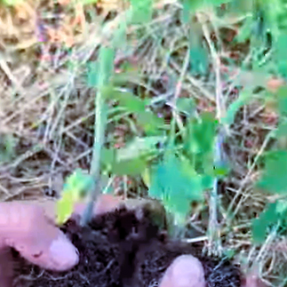 Mittlerweile ist es Mitte Mai geworden und wir pflanzen die Tomaten in die Hochbeete. Gemäss unseren eigenen Beobachten scheint uns die vorgefundene Version völlig stimmig und sinnig zu sein und wir pflanzen die Tomaten genau so aus. Zwischen den hochgebogen Stengeln befinden sich bei gespreizten Fingern gut 2 Handbreiten Abstand. 2 schmale Handbreiten haben wir dann doch nicht gewagt.